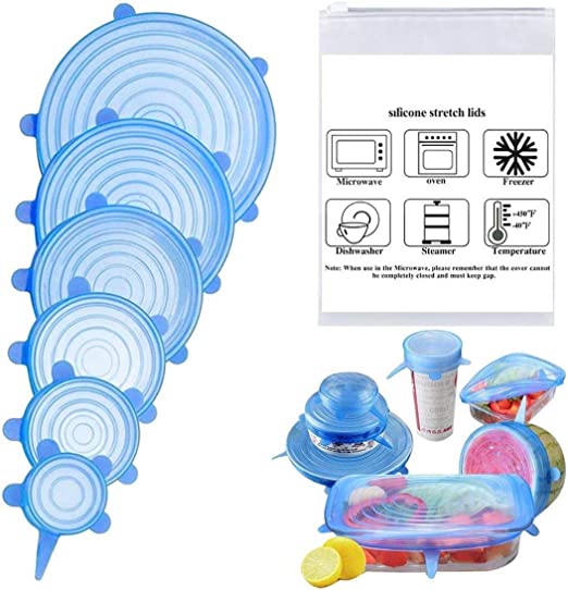 ⭐Tapas Elásticas de Silicona, Conjunto de 6 Tamaños Diferentes, Resistentes al Calor, Refrigeración, Antiderrames⭐